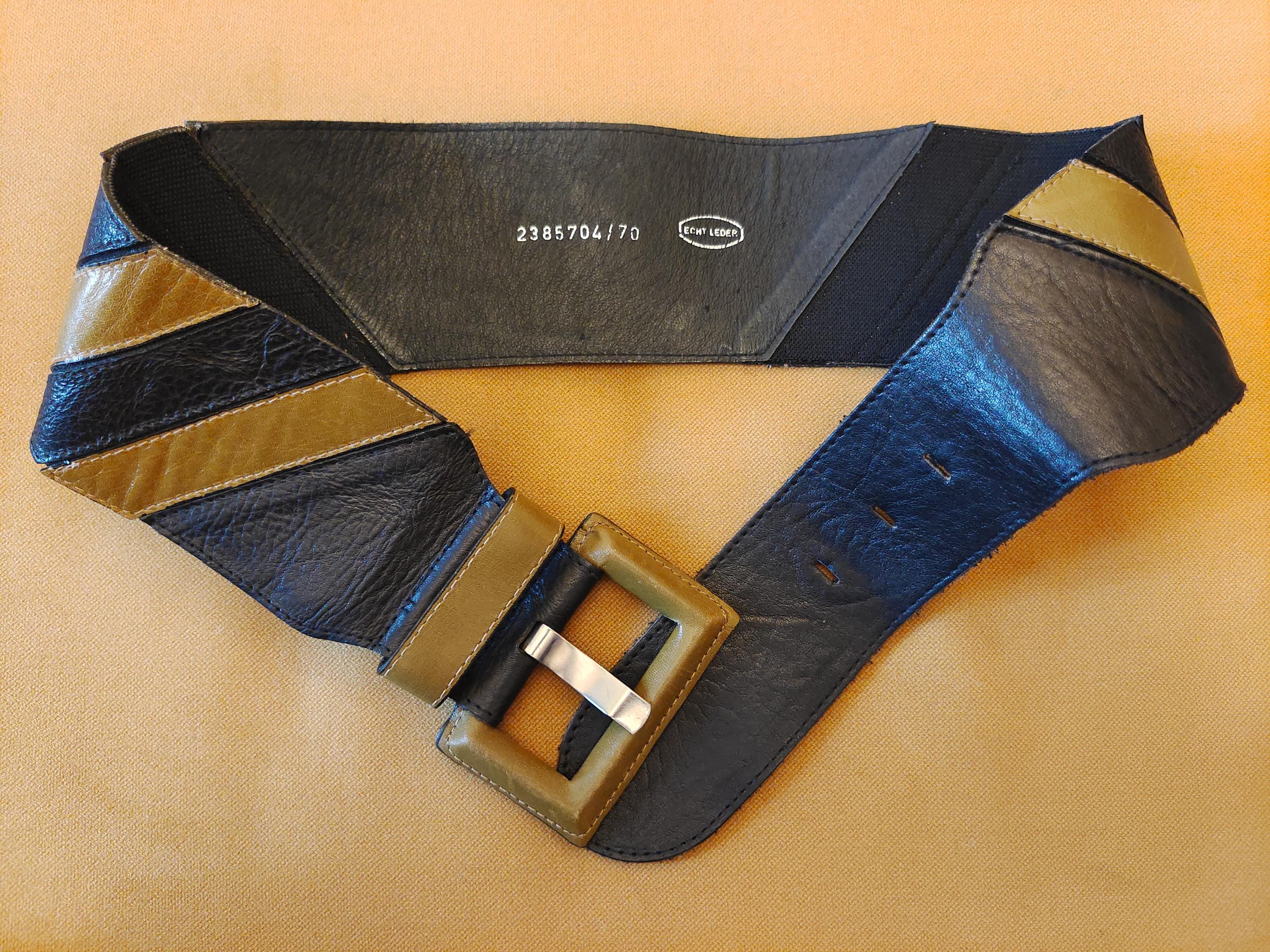 Wide Black & Olive Green Real Leather 80's Vintage Belt